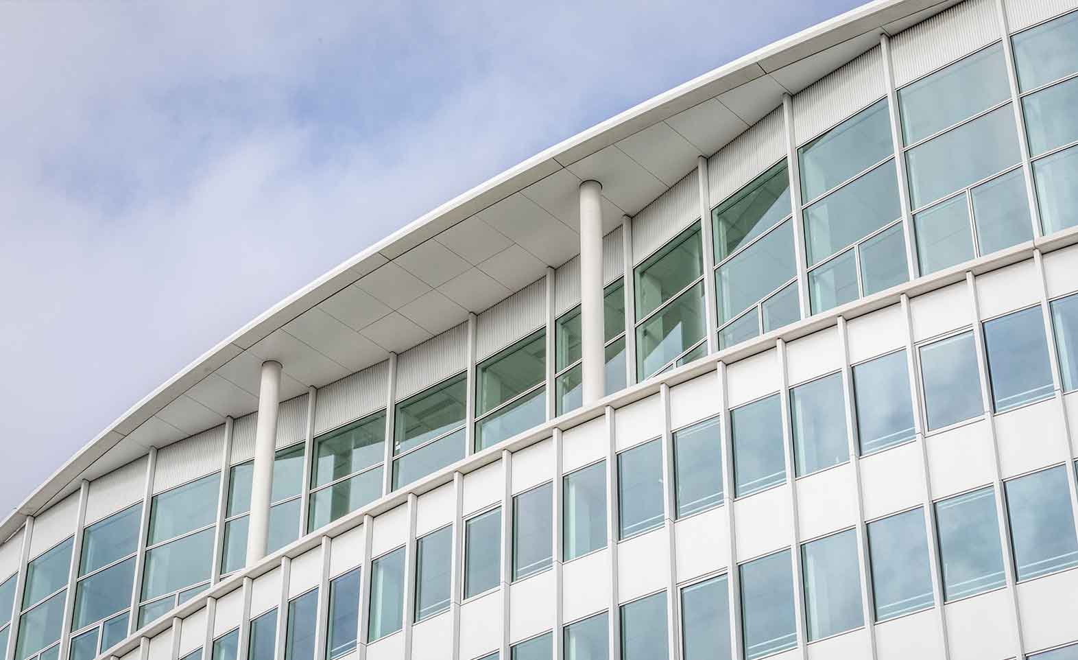 Les façades, traitées de manière unifiée, allient béton poli blanc et verre laqué, créant une esthétique épurée et contemporaine. Les formes arrondies du bâtiment apportent une fluidité architecturale et participent à la réorganisation des espaces publics autour de la parcelle. La démolition de la tour existante a été menée dans un environnement urbain dense, en étroite collaboration avec les copropriétés voisines, notamment les écoles et logements.